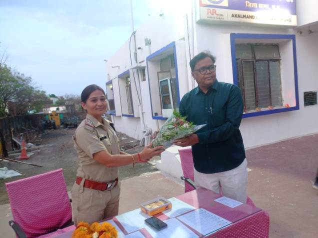 नवागत थाना प्रभारी अंजली उदौनिया से नगर परिषद सीएमओ पदम कुमार जै...