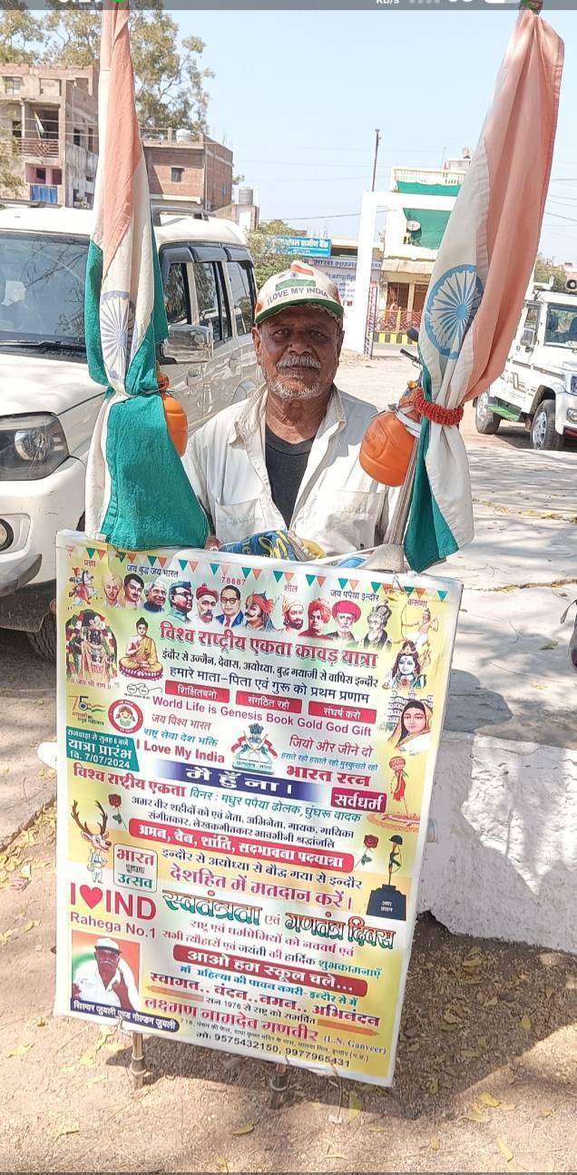 इंदौर निवासी 76 साल के लक्ष्मण नामदेव 8 महीने से 40 किलो वजन लेकर नगाड़ा बजाते हुए नंगे पांव चल रहे हैं,    इंदौर से अयोध्या ,बोधगया तक 4 हजार किलों मीटर लंबा सफर नंगे पांव...